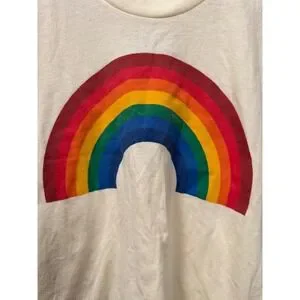 Aviator Nation Rainbow Graphic Cropped T-Shirt Cream Raw Hem Small