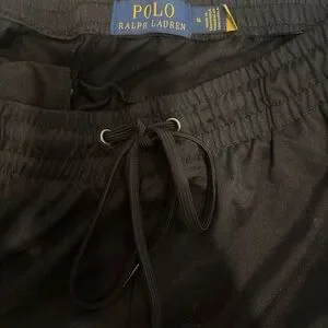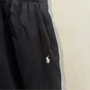 Classic black shorts with drawstring. Features Polo Ralph Lauren branding with white pony. Machine washable, made with polyester and elastane. Like new. Zipper pocket inside back and zipper pocket inside side pocket.