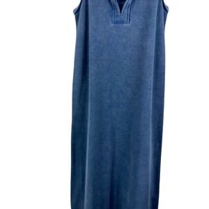 The Daily Practice Thermal Waffle Tank Top Midi Dress in size small is a stylish and comfortable garment perfect for casual occasions during the warmer seasons. The sleeveless design, crew neck, and pullover closure provide a classic and easy-to-wear appeal. Made from a lightweight and stretchy cotton blend material, this blue dress features a solid pattern and a midi length, making it a versatile choice for various stylish looks. Ideal for summer, fall, or spring, this tank dress embodies a nature-inspired bohemian vibe, making it a popular choice for women looking for a chic and effortless outfit.