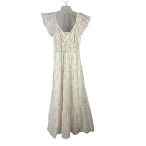 Storia Floral Maxi Dress Sz M Sheer Cottage Feminine Garden Prairie Lagenlook. Condition is Pre-owned - Excellent. Shipped with USPS Ground Advantage.