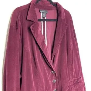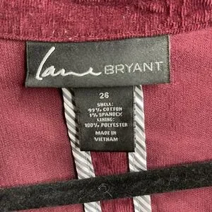 Lane Bryant Women's Velvet Velour Maroon Blazer Jacket Size 26 Dark Academia