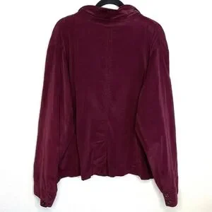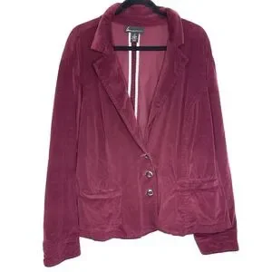 Elevate your fall wardrobe with this vintage Lane Bryant velvet blazer in a rich wine red hue. Crafted from soft corduroy-velvet fabric, it features a classic three-button front, notched lapel, and front flap pockets for a timeless, tailored look. Perfect for layering with blouses or turtlenecks, this piece blends Dark Academia and Boho Chic aesthetics with a touch of Quiet Luxury elegance. Ideal for cozy autumn outfits, officewear, or romantic date nights—this blazer channels an Anthropologie-meets-Sundance vibe that's effortlessly sophisticated.