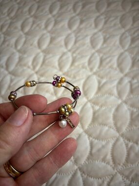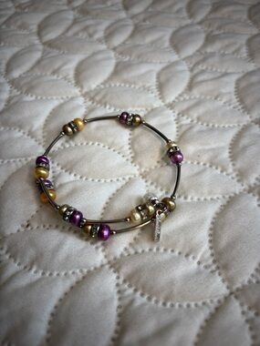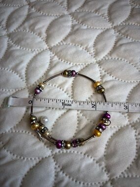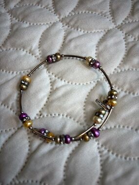 Vantel Pearls Purple and Gold Freshwater Pearls and Silver Tone Bracelet