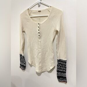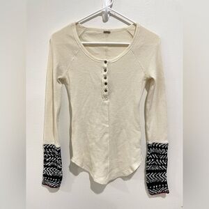 Free People Alpine Knit Cuff Henley Thermal Tunic Top Bella Swan S Y2K Cabincore
