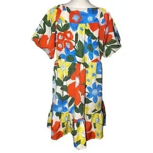Umgee Women's Medium Bubble Sleeve Floral Mini Tiered Ruffle Dress Tassels