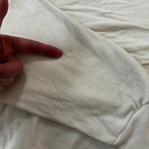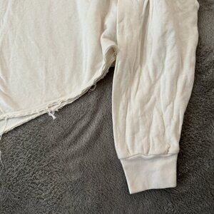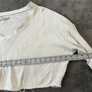 Nice pre-owned condition! One faint, small stain on the sleeve and a pinprick hole from a tag, see pictures. Madewell long sleeve cropped tee size large.