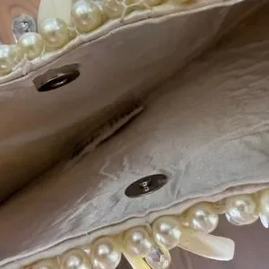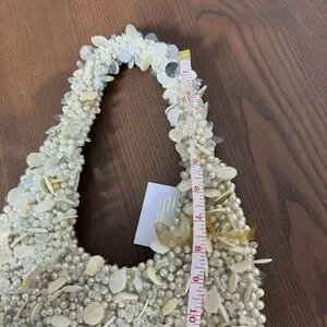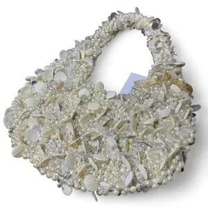 Cream and white Beaded pearl and shell shoulder moon bag