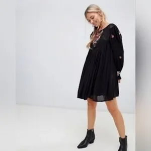 ❤️ FREE PEOPLE MOHAVE EMBROIDERED MINI DRESS - BLACK, SMALL