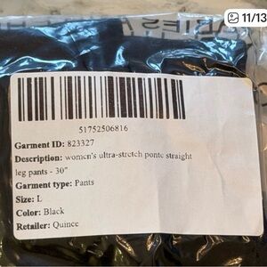 Quince Black Ponte Straight Leg Pants Sz L Ultra Stretch