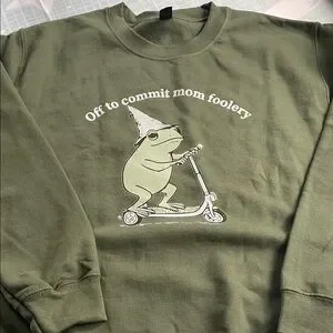 Comfortable olive sweatshirt with soft texture. Ideal for casual wear. Off to commit mom foolery
