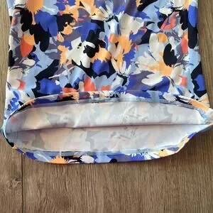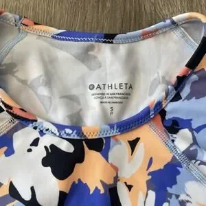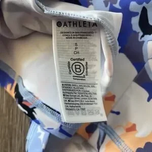 The Athleta Point Break Rashguard is a stylish and functional swim shirt designed for women in size small. Featuring a colorful floral pattern, this top is made from a nylon and spandex blend for durability and comfort. With long sleeves and a rash guard style, it is perfect for surfing, swimming, or any water activity. This Athleta piece is machine washable for easy care and comes from Cambodia, making it a unique addition to your swimwear collection.