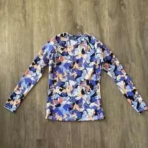 Athleta Point Break Rashguard Women's Small Long Sleeve Floral Swim Surf Top