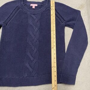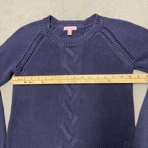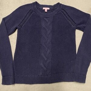Lilly Pulitzer Sweater Medium Blue Cable Knit Crewneck Preppy Cotton
