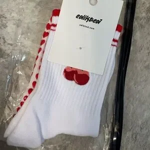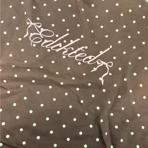 Chic brown top featuring cream polka dots. Edikted branding in pink. Size Large new with tags. Free edikted cherry grip yoga socks