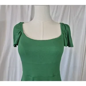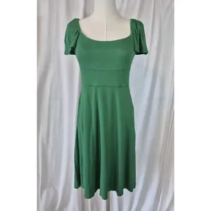 The Boden Square Neck Green Jersey Mini Dress in US size 2 is a stylish and flattering fit & flare dress designed for women. With a solid green color and short sleeves, this short dress is perfect for a casual or trendy look. Made from comfortable jersey material, this dress is a versatile addition to any woman's wardrobe, suitable for various occasions and settings.