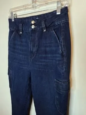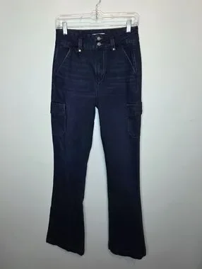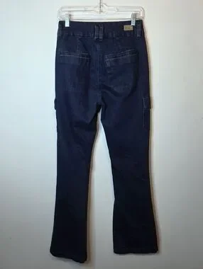 Paige Dion High Rise Cargo Flare Jeans Gracie Lou Dark Wash Y2K 90s Size 27
