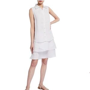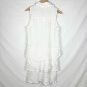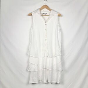 Finley Jasmine Sleeveless Tiered White Linen Dress Collared Button Front Size S