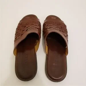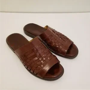 Bally Brown Woven Leather Slide Sandals Men Size 8 Brown