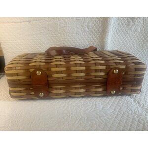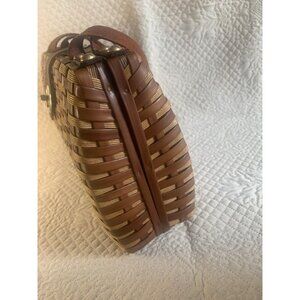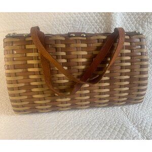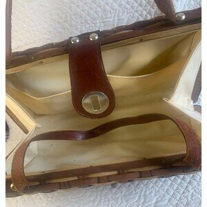 Wicker and Leather Basket Weave Purse Handbag Woven Vintage Hong Kong