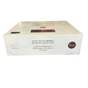 Snail Mucin hydrating set in red gradient packaging. Provides lightweight hydration, skin renewal, and concentrated serum treatment. Fast-absorbing formulas for daily moisture and radiance. Includes multi-step moisturizers and serum in red tones.