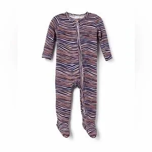 Angel Dear Zigzag Patterned Footie - Blue and Red Bamboo Pajamas Size 6-9 months