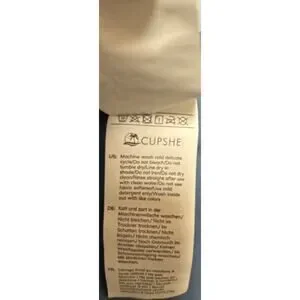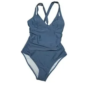 New with tags Cupshe one-piece swimsuit in a soft blue color. Features a flattering ruched front, adjustable straps, and a stylish cutout tie-back design. Fully lined with light support. Comfortable stretch fit and perfect for beach or pool days.