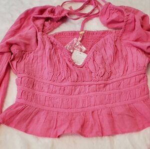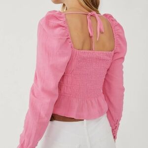 Pink smocked top. 100% Cotton.
