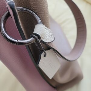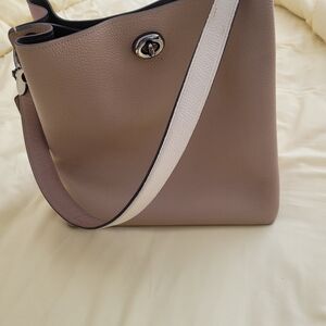 Chic Coach Charley satchel in taupe and pink. Sleek design with a modern touch. Please look at pictures. The bag is used and has a little wear. Inside is clean.