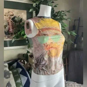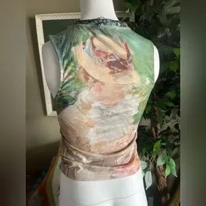 Desigual branded top with glitter accents. Subtle floral and speckled print. Soft textured inner lining. Casual chic vibe. Like new