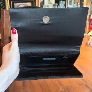 90s Elegant Black Bow Clutch Evening Bag