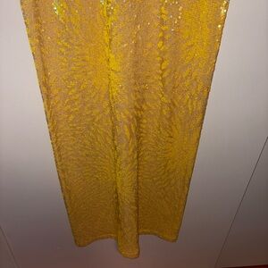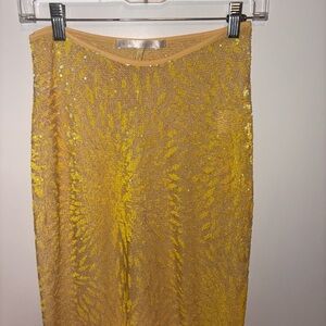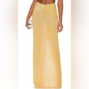 Natalie Rolt Desiree Sequin Maxi Skirt. Butter yellow. Size one which is a US 4. Slit in back. Column shape.