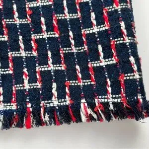 tweed skirt, fringe hem, button detail, navy red white, Talbots classic