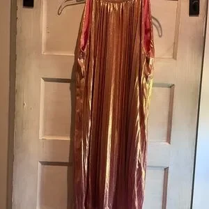 Lightweight sleeveless dress in vibrant rose gold. Pleated fabric with subtle drape. No tags, but never worn.