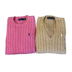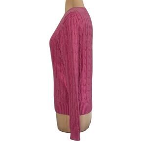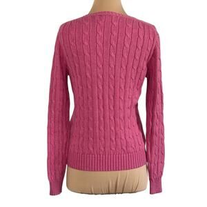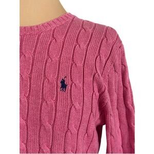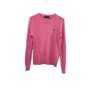 POLO RALPH LAUREN Cotton Cable Knit Crew Neck Sweater Top Pullover Pink Size Small