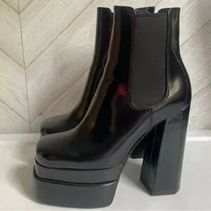 Jeffrey Campbell Black Patent Platform Chelsea Zip Boots
