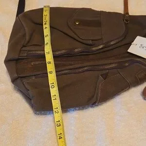 Zipper in rear can be opened to carry on one shoulder.