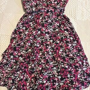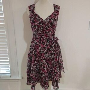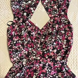 adorable ruffled dress with an open back and sweetheart neckline. it's super flowy and has the prettiest floral print
