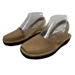 Pons Avarca Women Tan Leather Slingback Wedge Sandals Size 7 Comfort Spain