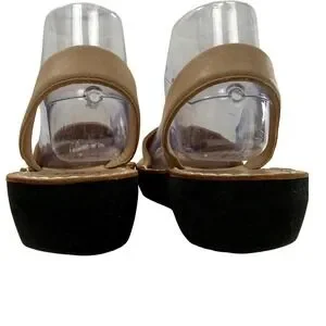 Pons Avarca Women Tan Leather Slingback Wedge Sandals Size 7 in Very Good pre-owned condition. Light wear on the upper and sole. There are light marks, scratches, scuffs and creases from use.
