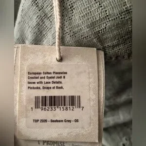 Crocheted mesh lace gives a delicate detail to this oversized blouse from Magnolia Pearl, complete with a lace neckline, pintucked details, and a scalloped eyelet hem.