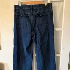 Stylish wide leg jeans. Dark blue hue. Perfect for versatile wear.