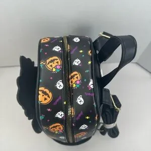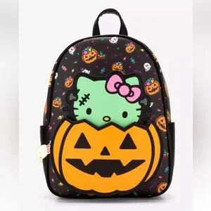 It's all treats and no tricks with zombie Hello Kitty! This scary cute mini backpack features your Sanrio fave peeking out of a jack-o-lantern-shaped front zipper pocket.