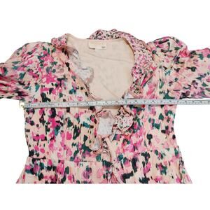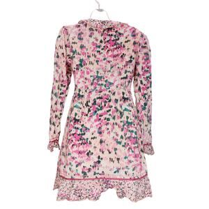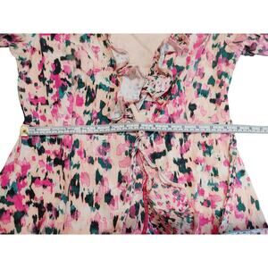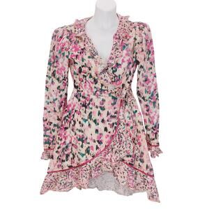 Rococo Sand Mimi Wrap Dress Long Sleeve V Neck Ruffled Pink Watercolor Medium