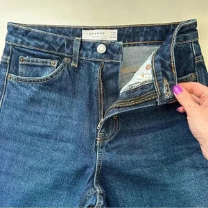 Topshop Straight Leg Jeans High Rise Ankle Crop Dark Blue Denim Size 26