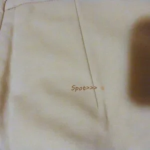 Very good used condition with a small faint spot on the back (see photo 6). No holes, tears, or major flaws. Clean hemline and intact zipper.