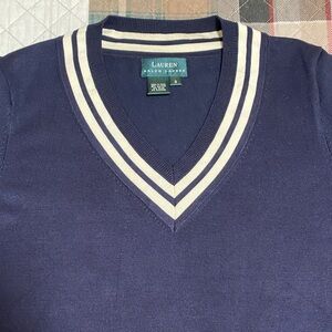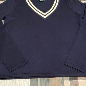 Vintage Lauren Ralph Lauren V-Neck Navy White Long Sleeve Women’s Sweater Silk S
