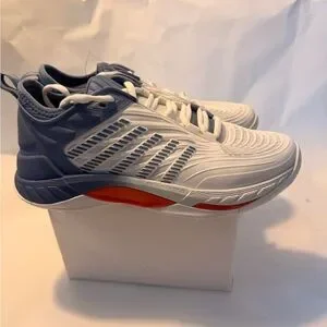 The Hypercourt Supreme 2 is the newest version of the Supreme model. With a focus on lightweight comfort and breathability, this shoe meets every expectation for high-performance players. Its newly engineered soft bootie collar gives a sturdier fit around the ankle, and Durawrap X upper offers flexible drag protection for sliding on the court. A dual-density midsole with lightweight Surgelite external foam provides optimal support, while a high-rebound Shock Spring inner foam on the forefoot allows quicker reaction in every step. The Dragguard 7.0 rubber outsole is designed with a herringbone tread pattern for excellent balance between grip and slide on all court surfaces.