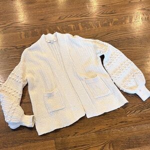 Madewell off White cotton cardigan Sweater with balloon sleeves, XS