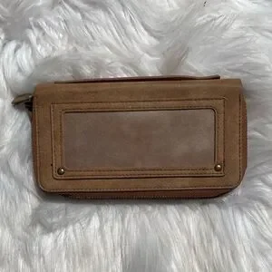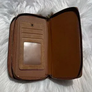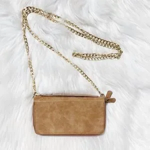 Mini Crossbody Zip Up Crossbody Wallet Tan and Gold Small