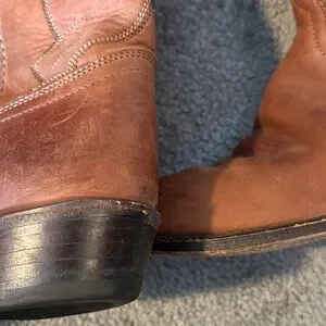 Stylish brown leather cowboy boots with intricate stitching. Perfect for a western look. In good pre owned condition! There is some wear around the sole, please see photos. Otherwise in good condition! Size 8M
